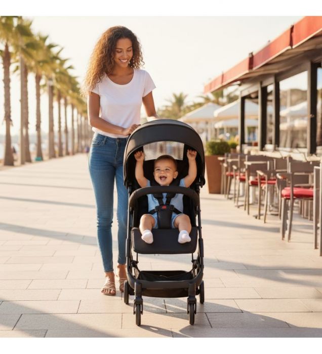 Built with a durable aluminium frame and sleek modern design, the Amsterdam Stroller ensures both strength and elegance. It folds easily with one hand and fits neatly in your car boot. The multi-position recline, adjustable footrest, and large canopy provide maximum comfort for your child from birth to 22 kg.
