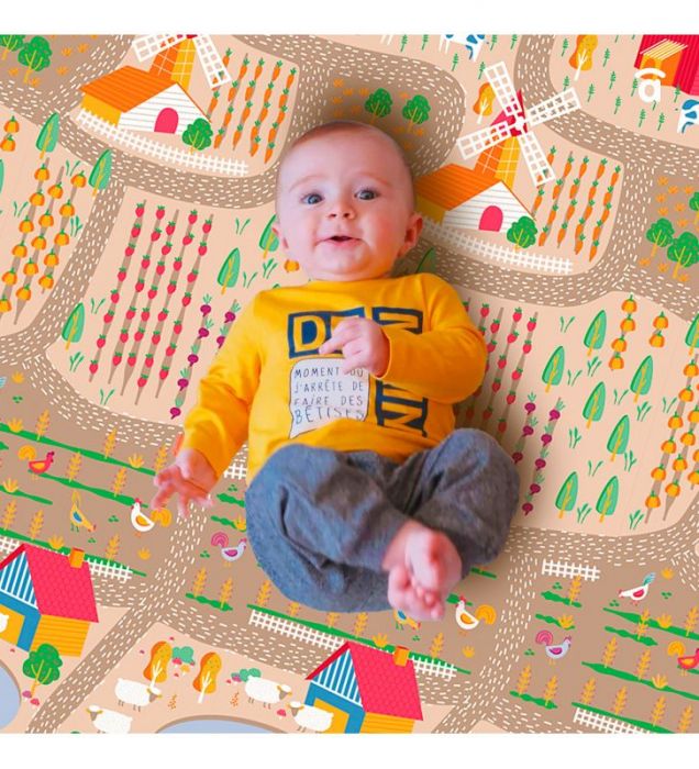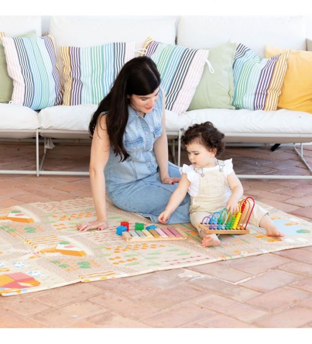 Made from high-density XPE foam, it provides excellent impact absorption while remaining completely free from toxins, including BPA. Each side features a different illustration printed with eco-friendly, plant-based inks, offering a stimulating environment that encourages cognitive development.