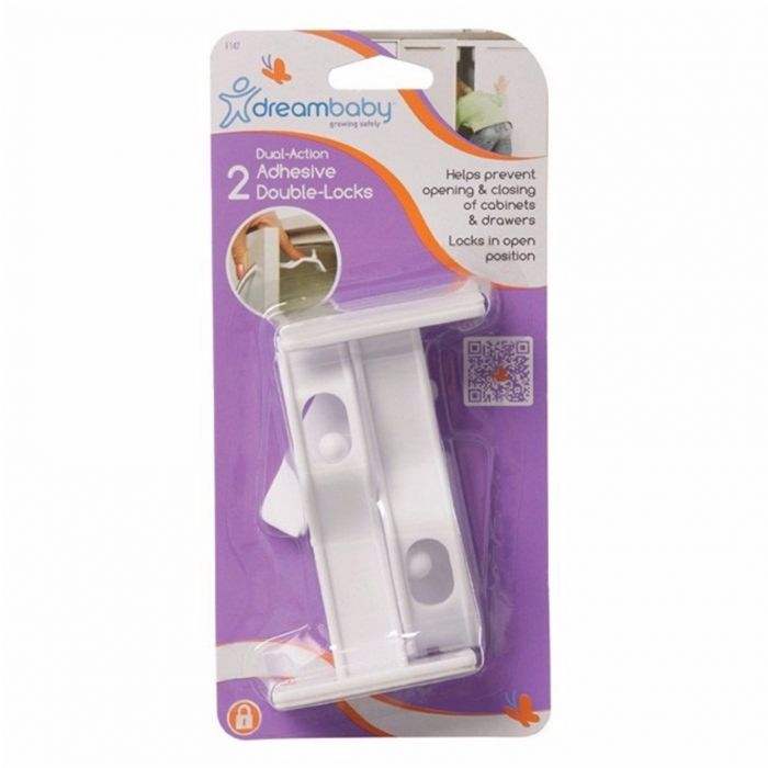 Dreambaby Adhesive Cupboard Double Locks(2 pack) are a safe and secure way to ensure that your child can´t open or close cupboard doors. They feature a dual lock system that stops them opening or closing completely. The adhesives are suitable for most surfaces.
