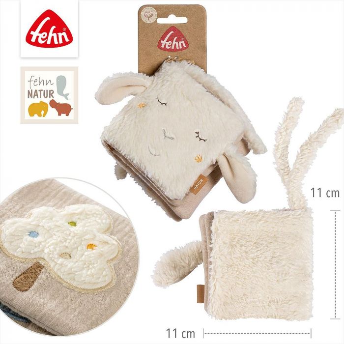 The Bio Cotton Sheep Soft Book from the fehnNATUR collection is a gentle and engaging first activity book made from organically grown cotton. Designed for babies from birth, it offers soft textures, calming colours and charming natural illustrations that invite little ones to touch, explore and discover. Each page features friendly characters such as a sheep, butterfly, windmill, cloud, tree and bird, creating a reassuring and nature-inspired experience.