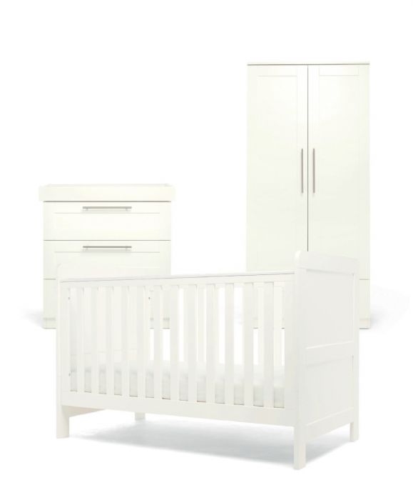 Hampden Baby Cot Bed – White The cot has three adjustable height positions and can convert into a toddler bed, meaning it will last for the first four years of your child’s life. Crafted with the utmost care and using durable materials, it is designed to withstand the rigors of daily use and the active nature of growing children. And with the addition of a double wardrobe and convertible dresser/changer, you’ll have plenty of storage space for all of your baby’s essentials.