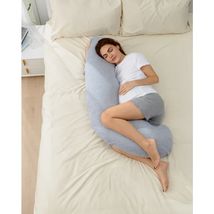 Momcozy J-Shaped Pregnancy Body Pillow – Full Body Support for Restful Sleep
