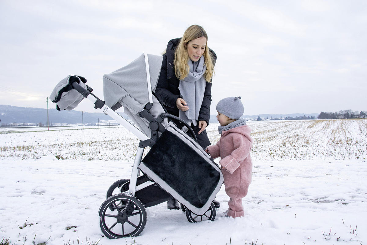 The Osann Footmuff is made of high quality synthetic fur providing both a pleasant warmth and freedom of movement at the same time.Thanks to its belt slots (suitable for three- and five-point belts), the footmuff finds optimal support in all strollers and buggies – including a foldable windscreen for attachment to the bumper bar. There isa double zipper allowing them to be opened completely on both sides for ease of access.In addition, a large storage compartment on the front offers enough space for a comforter, pacifier etc.