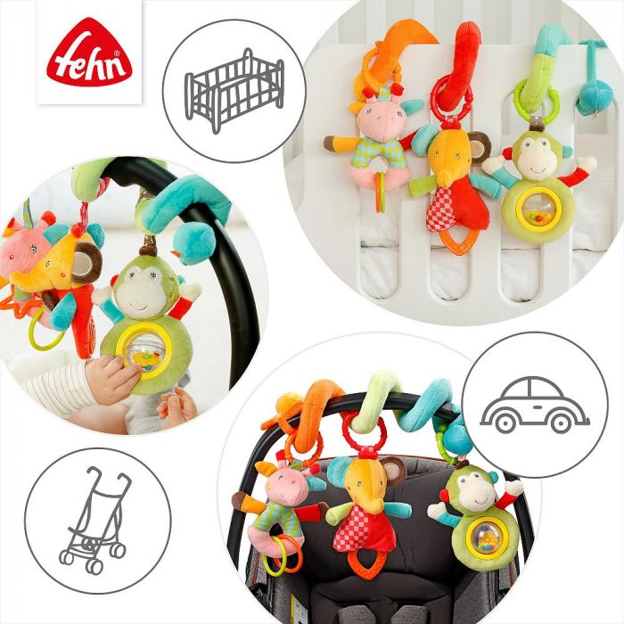 Introducing the Activity Spiral Safari, a captivating and versatile companion for your baby’s early years. This remarkable plush spiral with adorable animal pendants is designed to engage, entertain, and stimulate your baby’s senses and motor skills. Whether you’re at home or on the move, this activity spiral is tailor-made for infants and toddlers aged 0 and beyond.