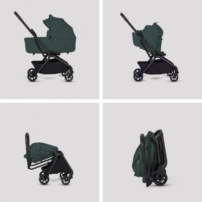 The real game-changer is the carrycot. Unlike traditional prams, Nia’s carrycot can be folded with one hand while still attached to the chassis, making storage at home or on the go genuinely effortless. Inside, a soft-touch, bamboo-lined mattress and panoramic ventilation keep baby comfortable and well-aired, while the extendable UPF50+ sun peak creates a cosy shaded space-perfect for naps wherever you are.
