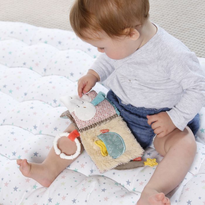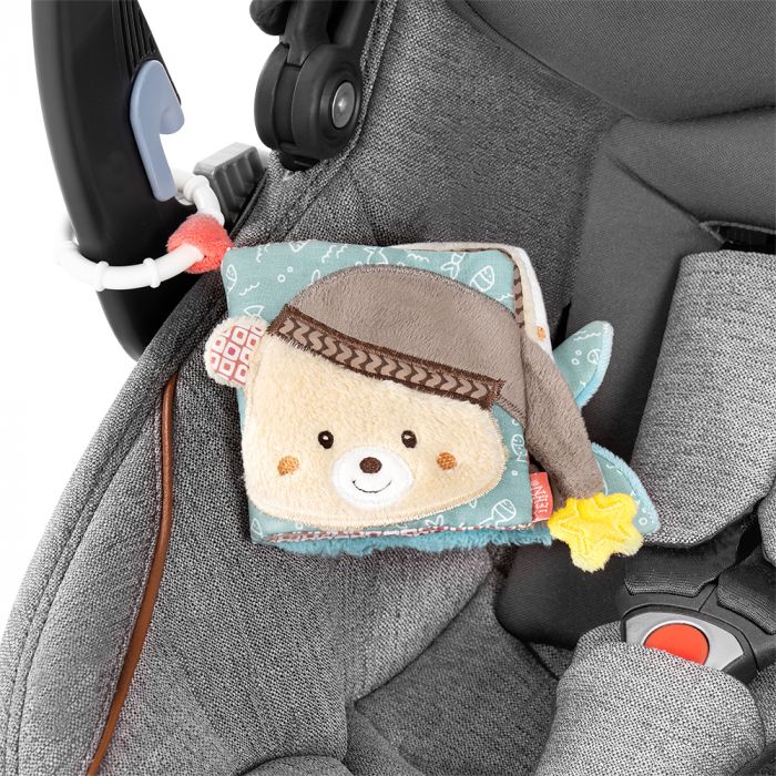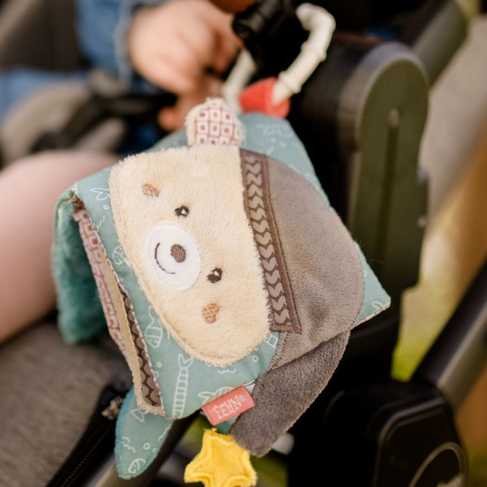 Cuddly playmates – Bear Bruno and his best friend Sammy the Sawfish invite you to discover, explore and touch 8 exciting pages. The squeak, crinkly paper & mirror offer lots of and is a great toy for developing visual and sensory skills . The C-ring allows easy attachment to the pushchair, pram, crib or car seat. For great playing fun – whether at home or on the go!