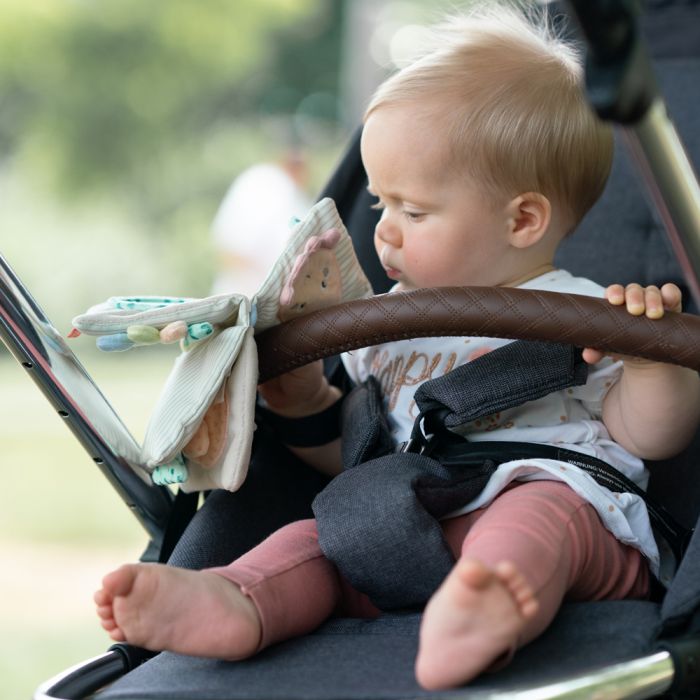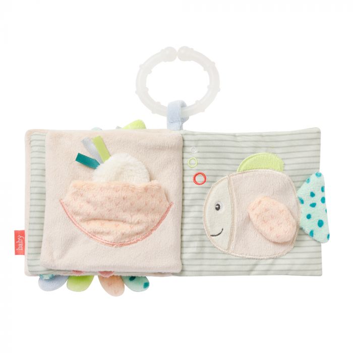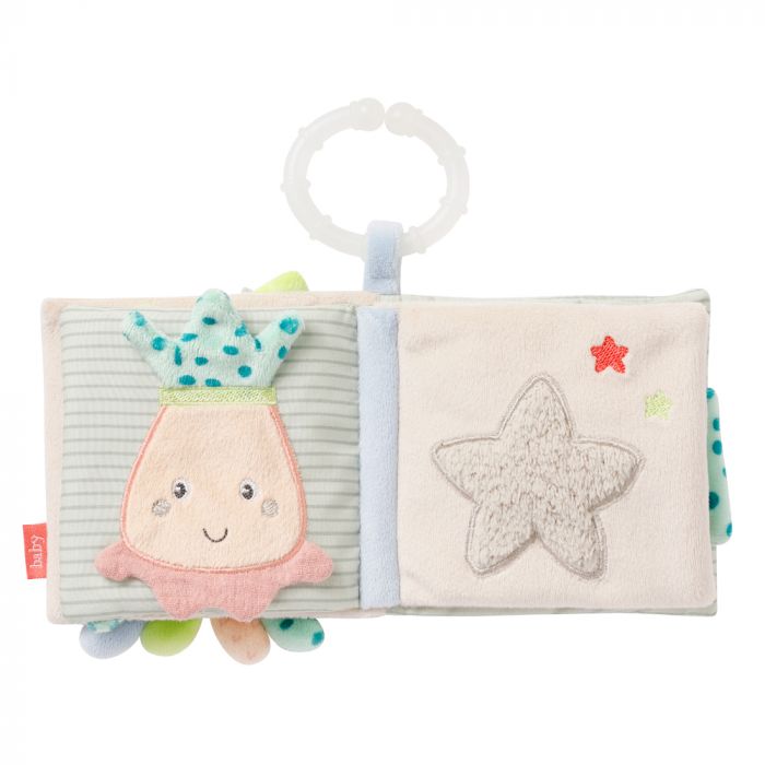 The octopus soft book invites your baby to discover the magical underwater world of the children of the sea. Octopus, seahorse, and fish provide a lot of fun while browsing and exploring 8 exciting pages. The squeak, crinkly paper & mirror offer lots of and is a great toy for developing visual and sensory skills . The C-ring allows easy attachment to the pushchair, pram, crib or car seat. For great playing fun – whether at home or on the go!